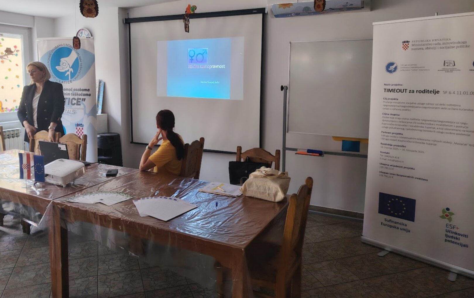 Partneri na projektu TIMEOUT za roditelje SF.6.4.11.01.0002 su nam Udruga slijepih Koprivničko – križevačke županije te Udruga Maslačak Križevci. Razdoblje provedbe je od 16. travnja 2025. do 16. listopada 2026. godine. Ukupna vrijednost projekta je 139.790,22 € što je ujedno i ukupan iznos bespovratnih sredstava. Detalji se mogu doznati na Kontakt Udruge za pomoć osobama s intelektualnim teškoćama Latice kao Prijavitelja (e-mail: info@latice.hr). Voditeljica projekta te ujedno i predsjednica Udruge Latice je Nevenka Fuchs. Projekt sufinancira Europska unija iz Europskog socijalnog fonda plus. Više informacija o EU fondovima možete pronaći na poveznici: Eurposki Socijalni Fond +