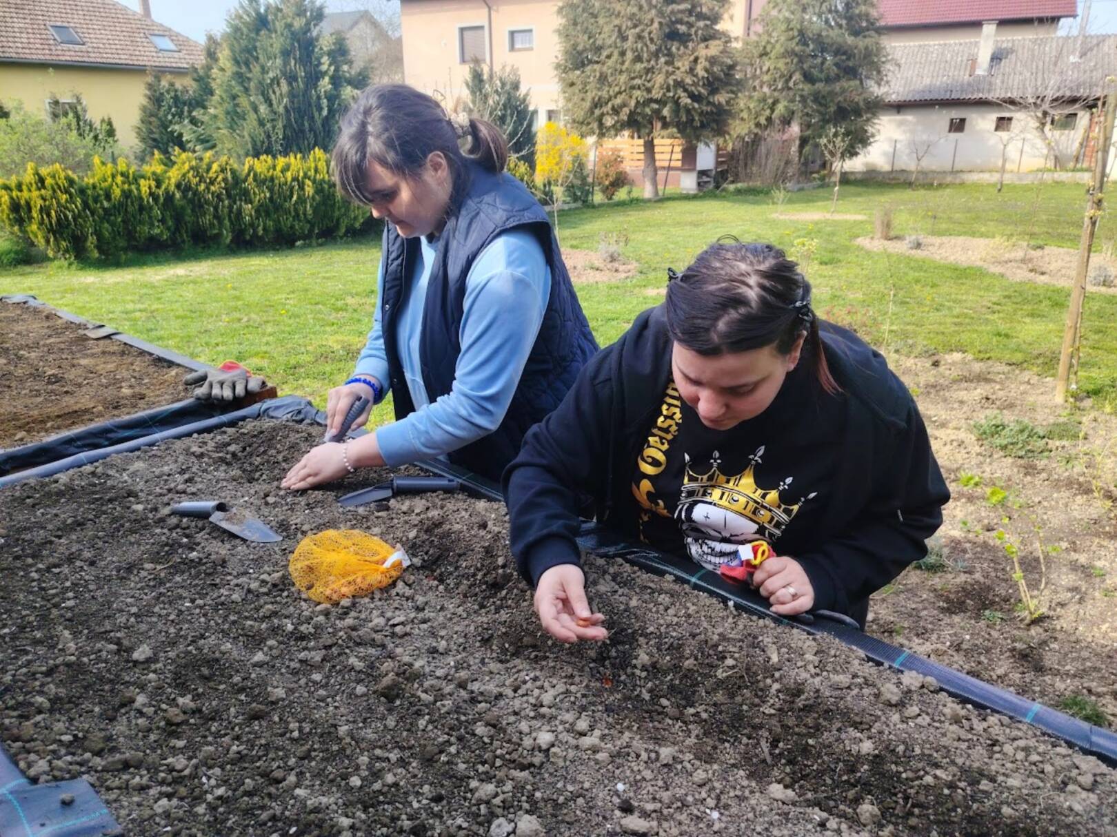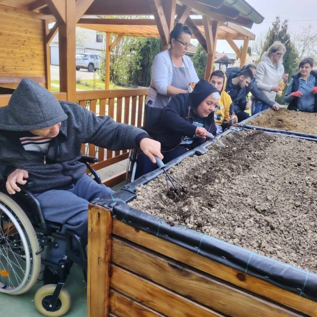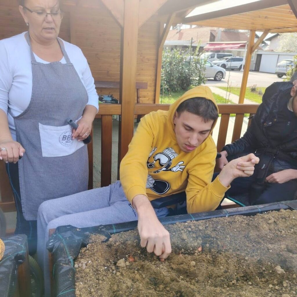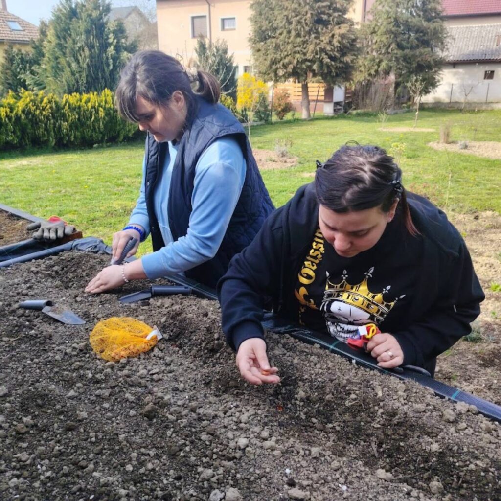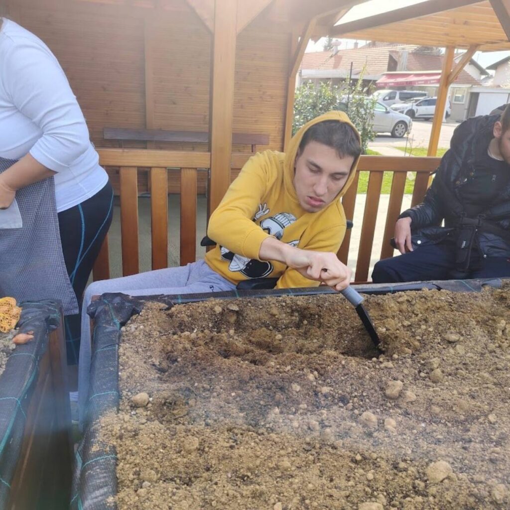 Sreća, zajedništvo, uključenost, učenje, svim ovim riječima može se opisati iskustvo kojim smo zaključili predzadnji tjedan u ožujku. Već neko vrijeme marljivo radimo na dizajnu i izgradnji novog vrta koji bi bio prilagođen osobama s invaliditetom. Odlučili smo iskoristiti priliku te isprobati učinjeno i ocjena je čista desetka! U podignute gredice kojima mogu pristupiti i osobe koje se kreću pomoću kolica posadili smo lukovice iz kojih će niknuti ukusni luk! Izradili smo mali plastenik u kojemu smo posijali salatu, čim nikne također ćemo je dodati u gredice. Pripremili smo i jednu posebnu gredicu za jagode! Ovo naravno nije sve jer u planu imamo pripremu dodatnih površina za začinsko bilje i bobičasto voće. Prostor vrtne kućice iskoristit ćemo za funkcionalne radionice koje uskoro kreću. Ima mjesta za sve i uskoro ćemo podijeliti mnogo lijepih vijesti iz našeg vrta! Priroda nas je počastila i lijepim pupoljcima pa po tome znamo da smo na pravom putu!