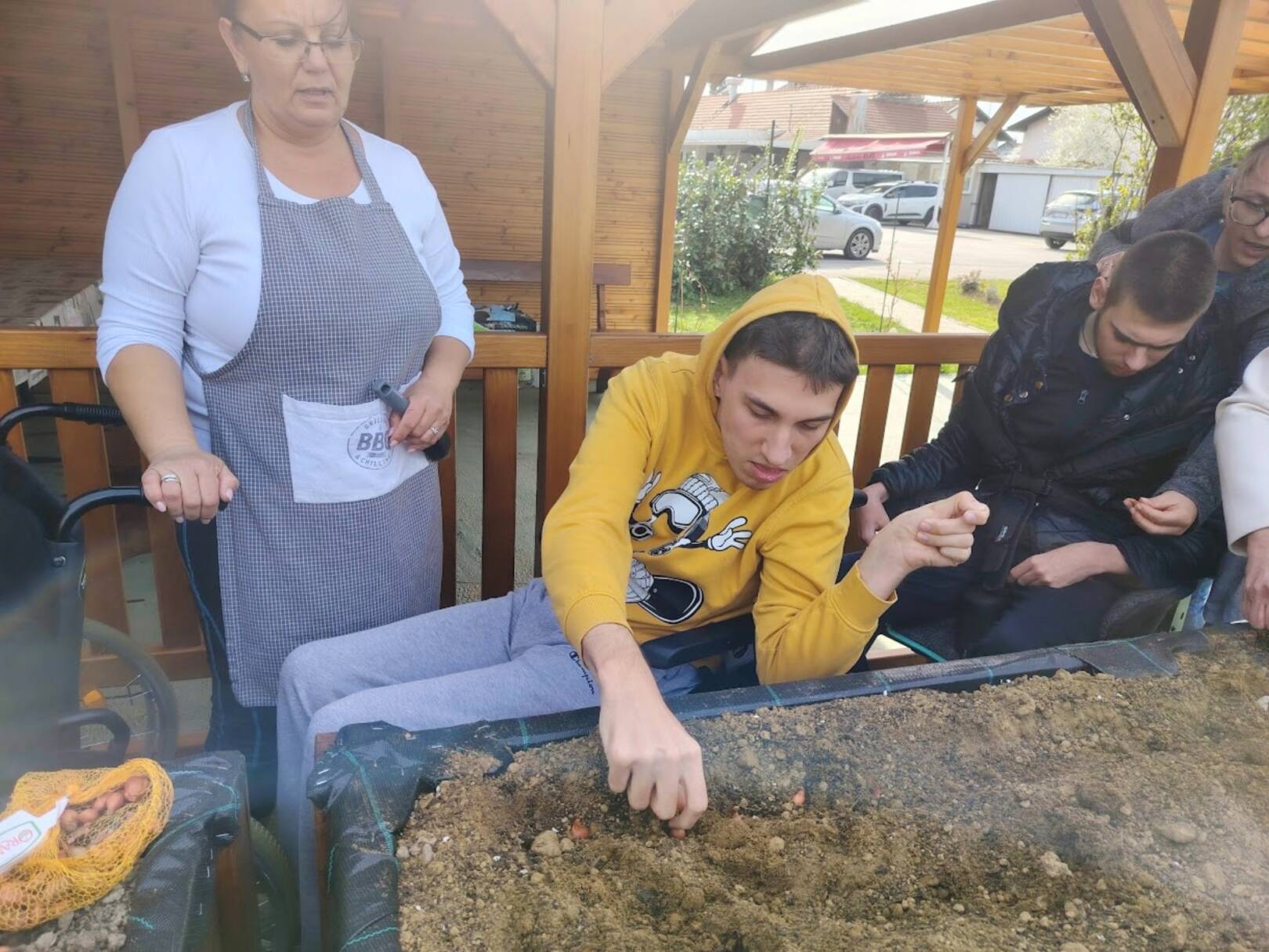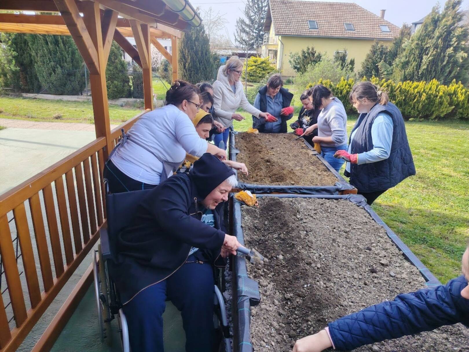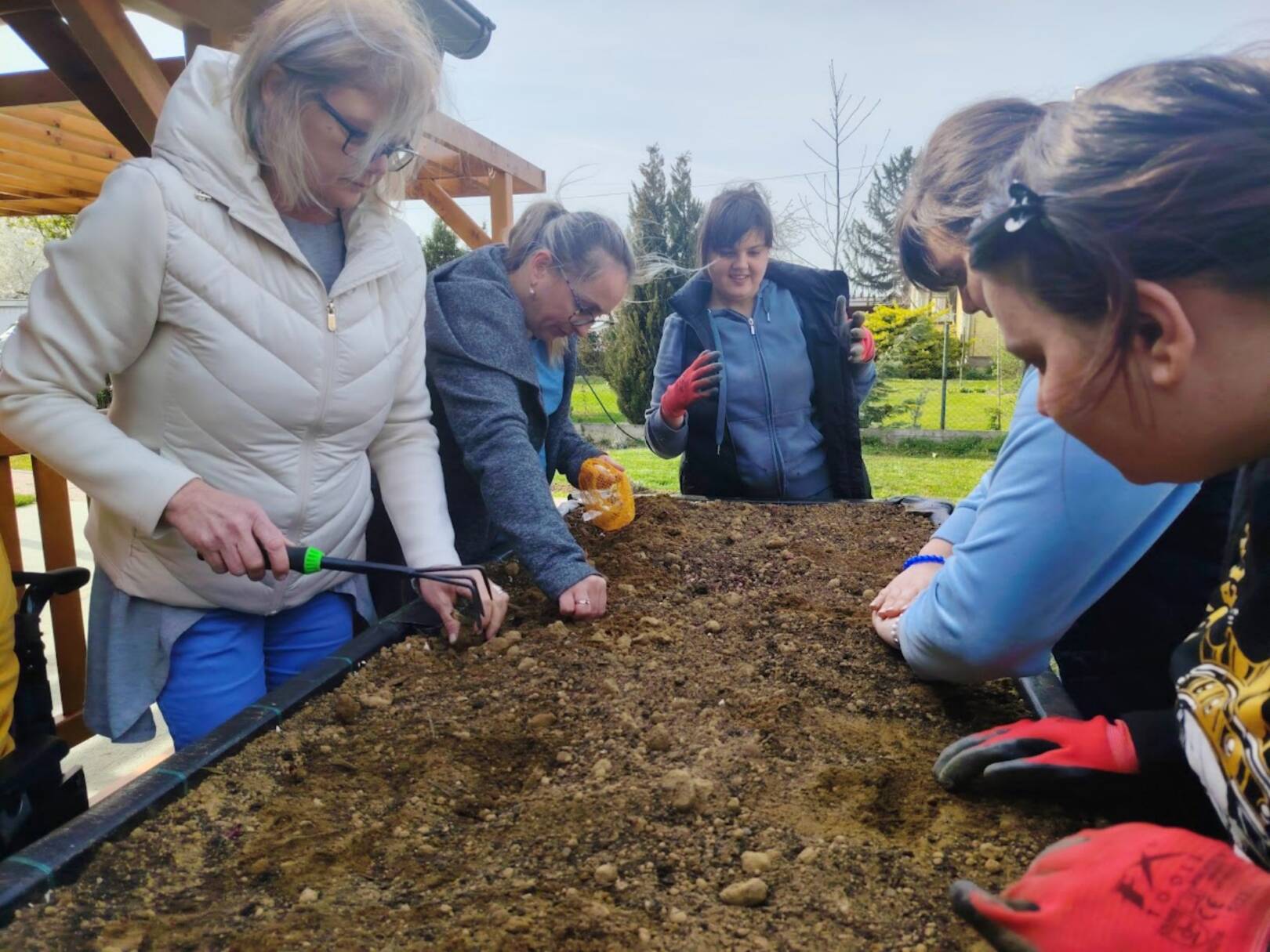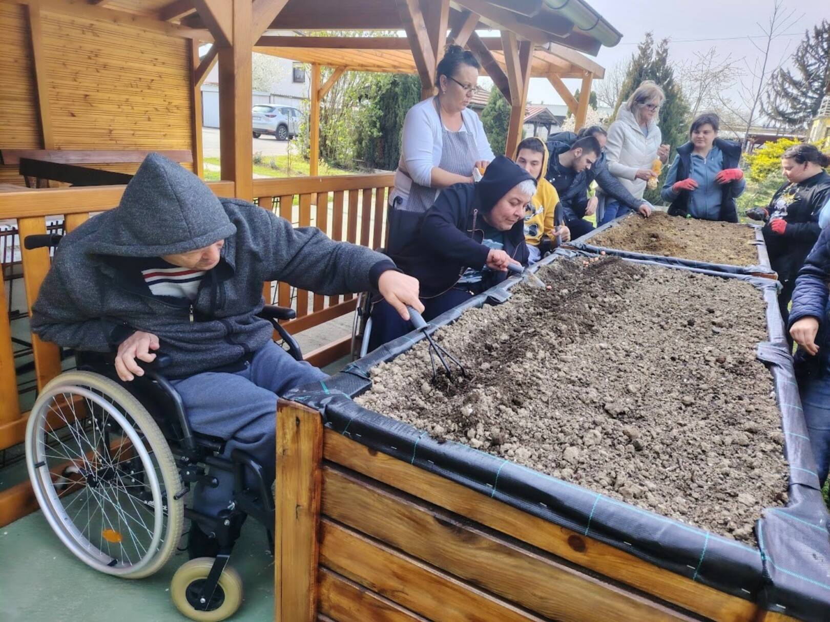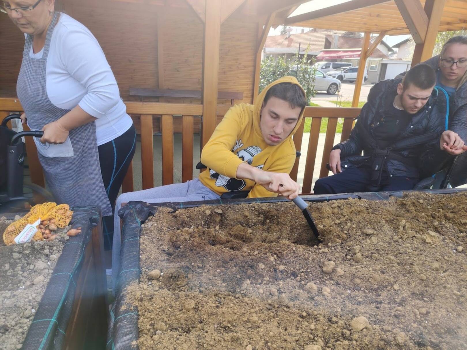 Sreća, zajedništvo, uključenost, učenje, svim ovim riječima može se opisati iskustvo kojim smo zaključili predzadnji tjedan u ožujku. Već neko vrijeme marljivo radimo na dizajnu i izgradnji novog vrta koji bi bio prilagođen osobama s invaliditetom. Odlučili smo iskoristiti priliku te isprobati učinjeno i ocjena je čista desetka! U podignute gredice kojima mogu pristupiti i osobe koje se kreću pomoću kolica posadili smo lukovice iz kojih će niknuti ukusni luk! Izradili smo mali plastenik u kojemu smo posijali salatu, čim nikne također ćemo je dodati u gredice. Pripremili smo i jednu posebnu gredicu za jagode! Ovo naravno nije sve jer u planu imamo pripremu dodatnih površina za začinsko bilje i bobičasto voće. Prostor vrtne kućice iskoristit ćemo za funkcionalne radionice koje uskoro kreću. Ima mjesta za sve i uskoro ćemo podijeliti mnogo lijepih vijesti iz našeg vrta! Priroda nas je počastila i lijepim pupoljcima pa po tome znamo da smo na pravom putu!
