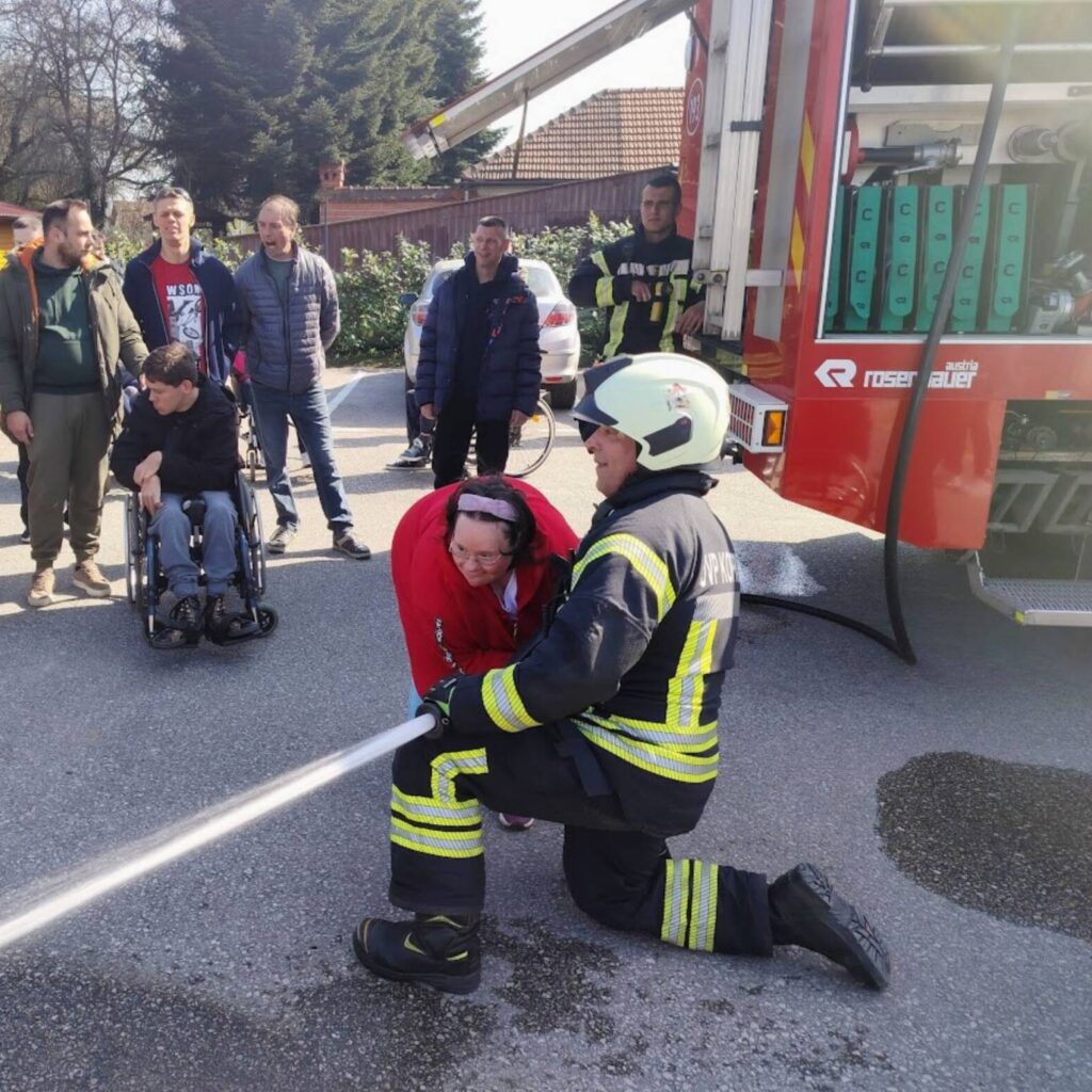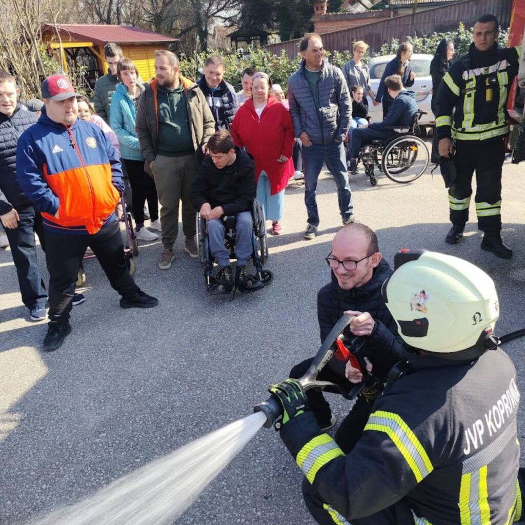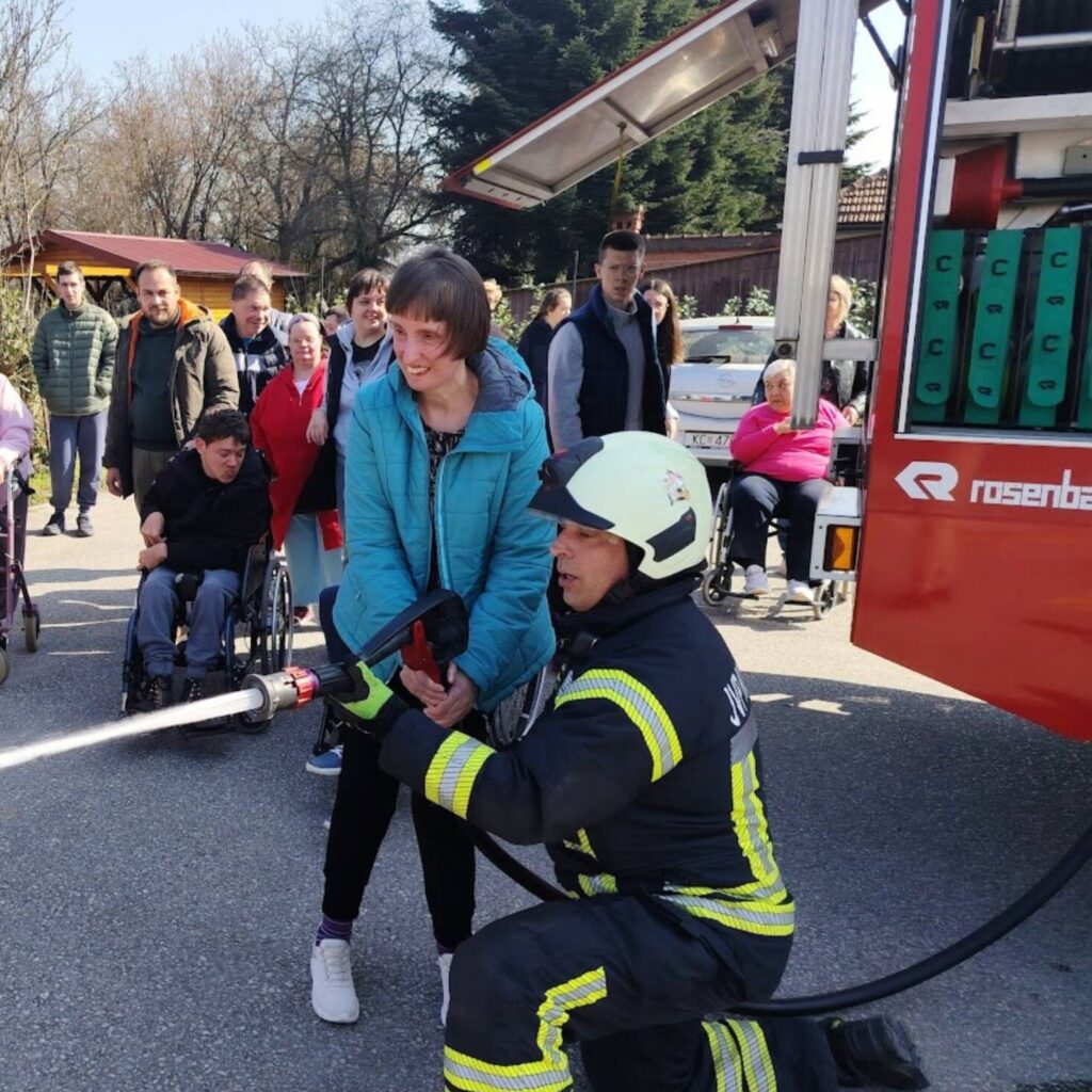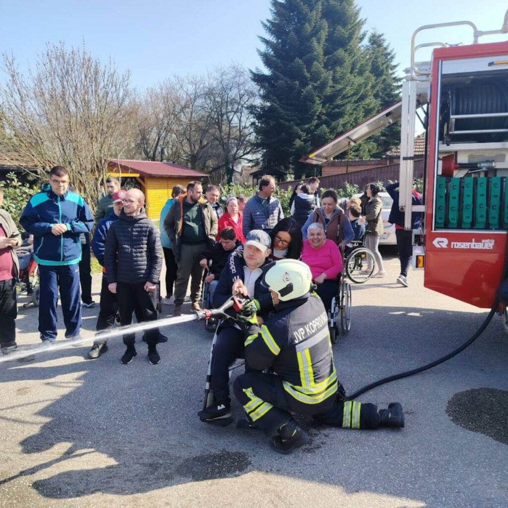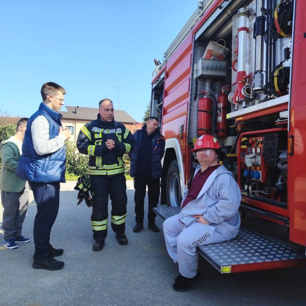 Prekrasan dan u srijedu, sredinom ožujka, donio nam je novu energiju za učenje! U Latice su došli naši prijatelji, vatrogasci Nikola i Antonio iz Javne vatrogasne postrojbe Grada Koprivnice i predstavili nam svoj posao, opremu i način rada. Uz mnogo razgovora i zabave objasnili su nam sve o svom zanimanju, pokazali nam uređaje i pomagala na vatrogasnom kamionu, a veliko uzbuđenje kod nas je izazvala prilika da isprobamo pustiti vodu iz vatrogasne mlaznice. Nakon ovako uzbudljivog doživljaja, opustili smo se uz pjesmu i zabavu, a naši prijatelji vatrogasci su nam poklonili bojanke i brošure vezane uz njihov posao. Ovakav tip interaktivnog rada na otvorenom ojačava naše samopouzdanje te pruža priliku za uključivanje u svakodnevicu. Već sad smo nestrpljivi u očekivanju sljedećeg susreta, hvala dečki, još jednom ste nas inspirirali za stjecanje novih iskustava.