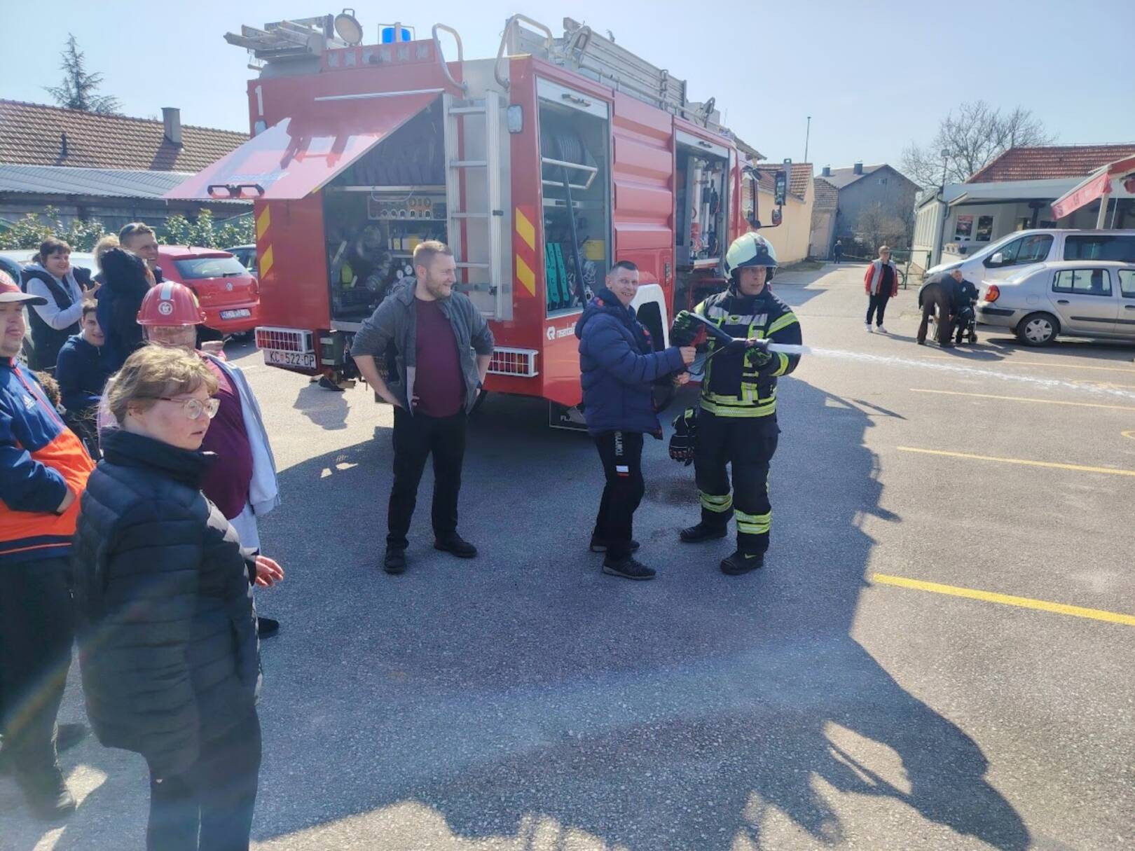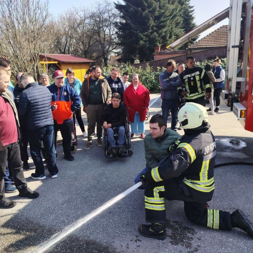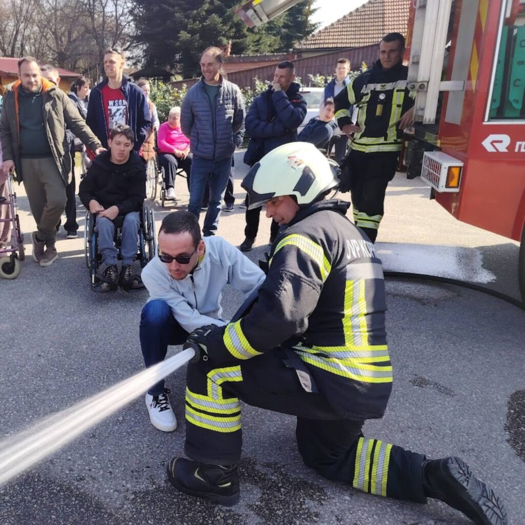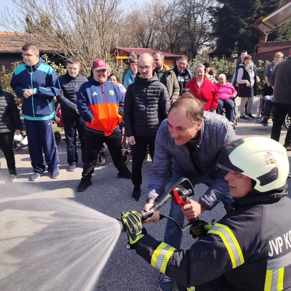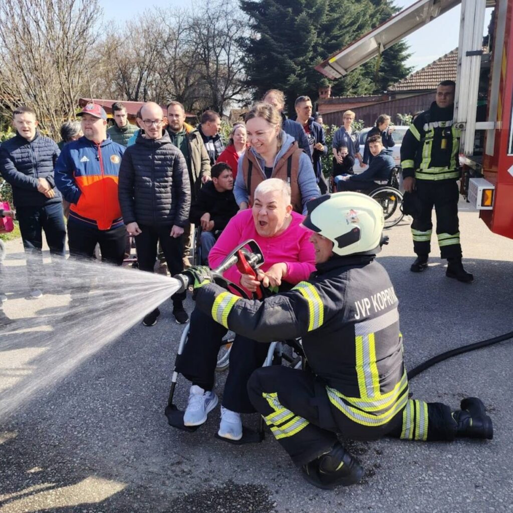Prekrasan dan u srijedu, sredinom ožujka, donio nam je novu energiju za učenje! U Latice su došli naši prijatelji, vatrogasci Nikola i Antonio iz Javne vatrogasne postrojbe Grada Koprivnice i predstavili nam svoj posao, opremu i način rada. Uz mnogo razgovora i zabave objasnili su nam sve o svom zanimanju, pokazali nam uređaje i pomagala na vatrogasnom kamionu, a veliko uzbuđenje kod nas je izazvala prilika da isprobamo pustiti vodu iz vatrogasne mlaznice. Nakon ovako uzbudljivog doživljaja, opustili smo se uz pjesmu i zabavu, a naši prijatelji vatrogasci su nam poklonili bojanke i brošure vezane uz njihov posao. Ovakav tip interaktivnog rada na otvorenom ojačava naše samopouzdanje te pruža priliku za uključivanje u svakodnevicu. Već sad smo nestrpljivi u očekivanju sljedećeg susreta, hvala dečki, još jednom ste nas inspirirali za stjecanje novih iskustava.