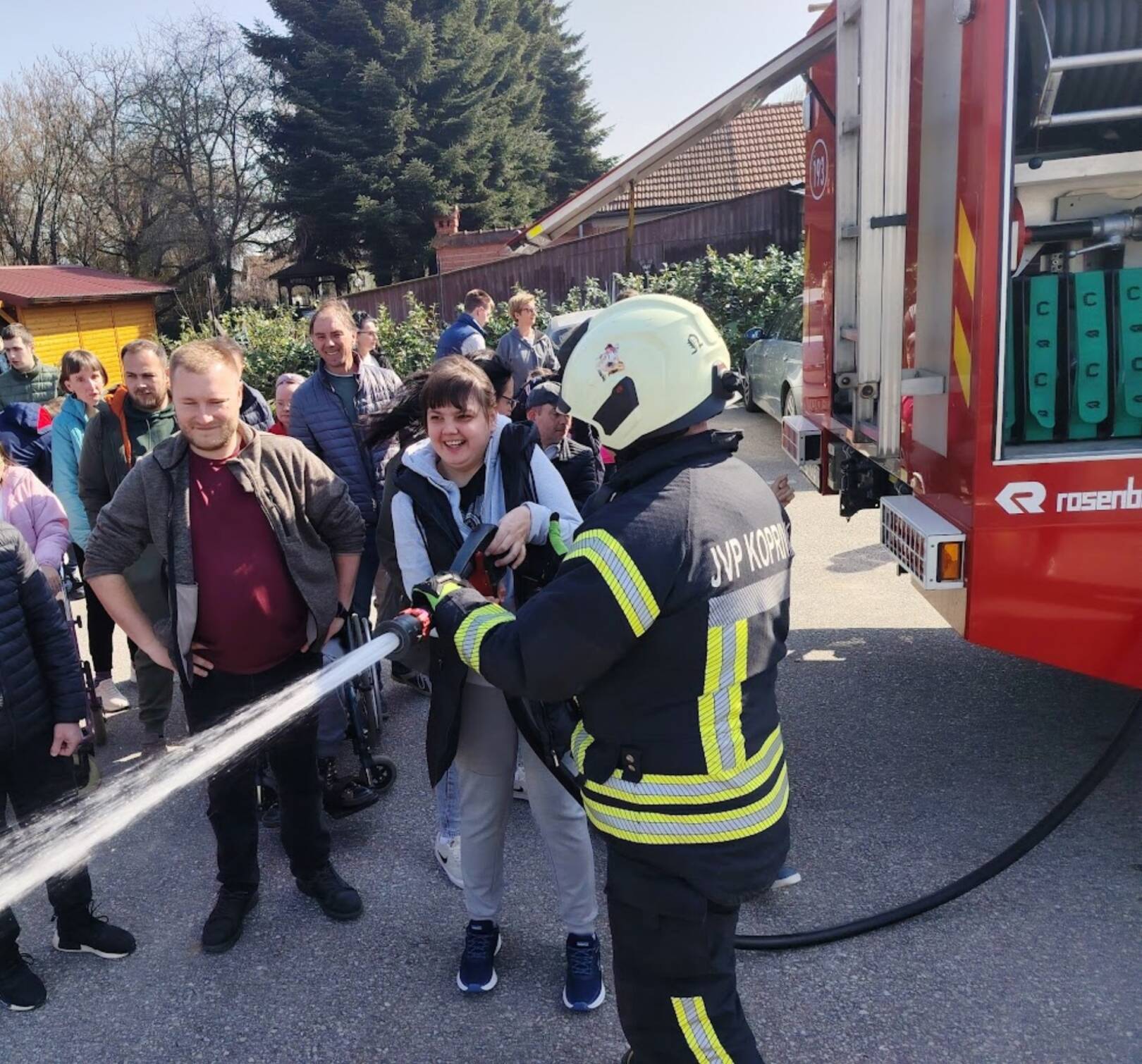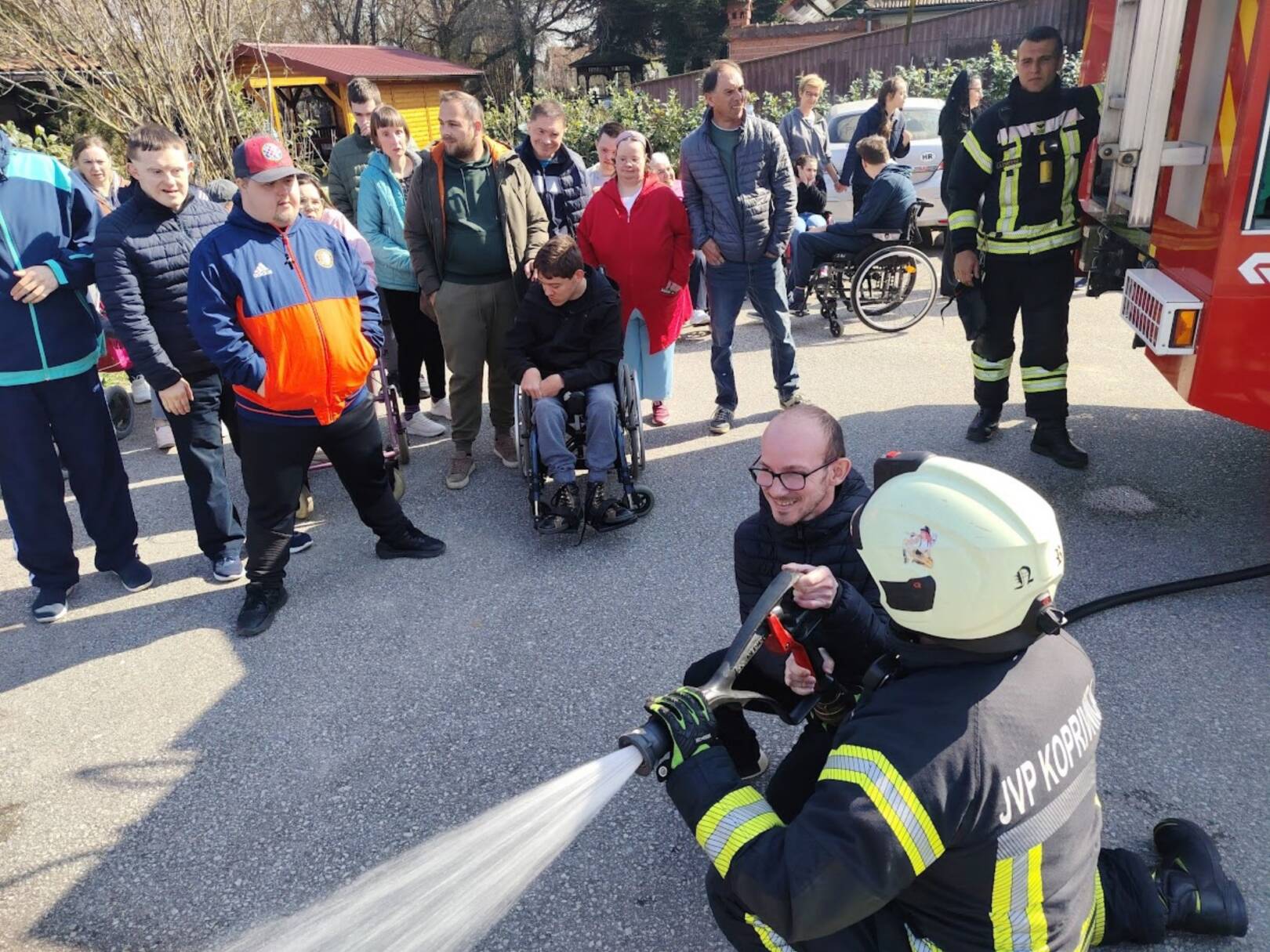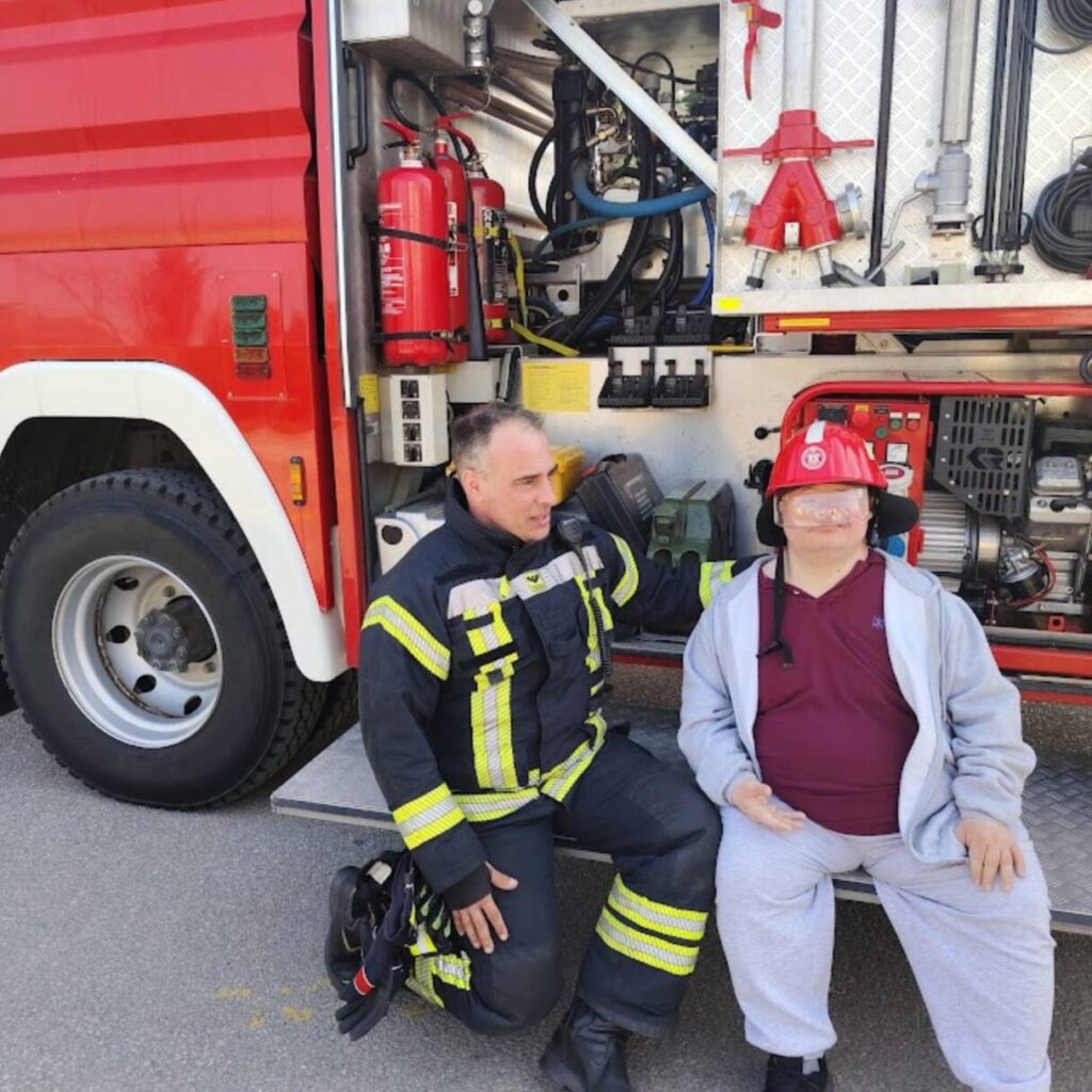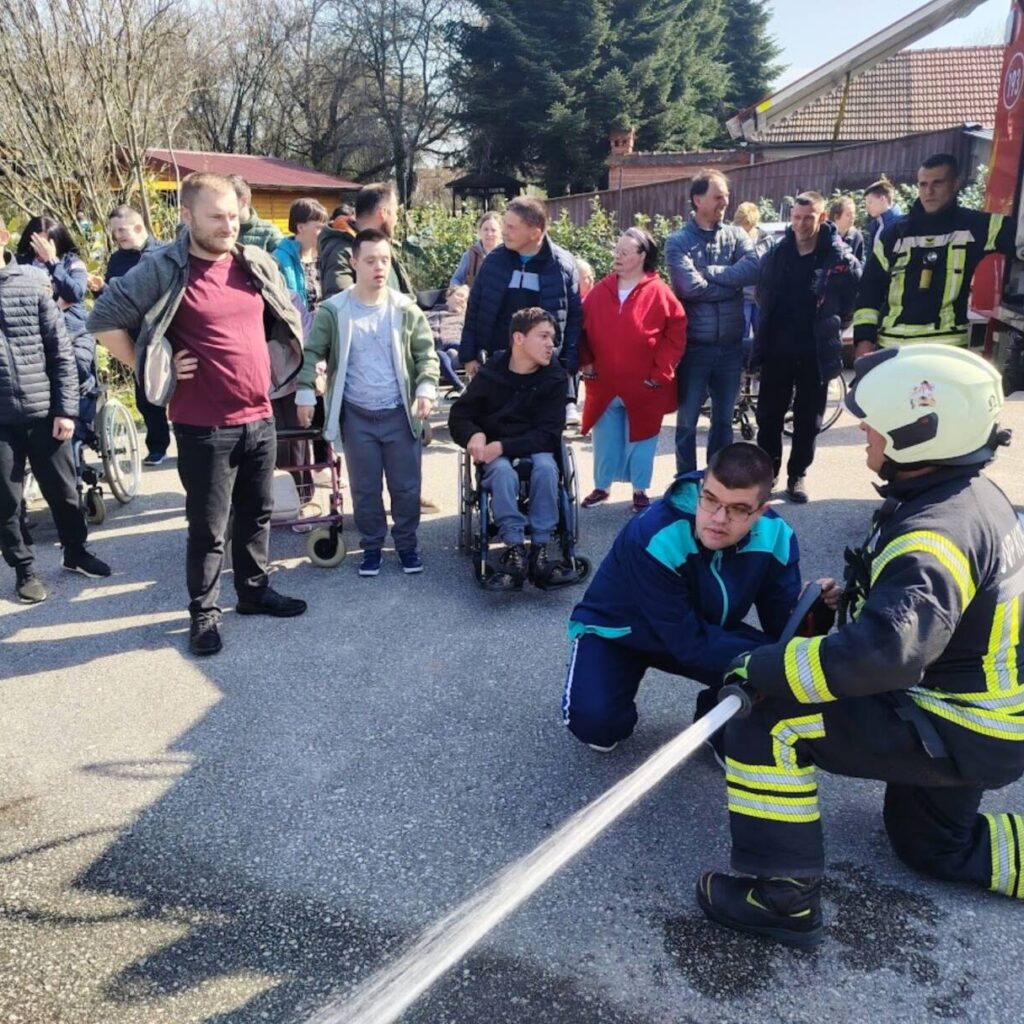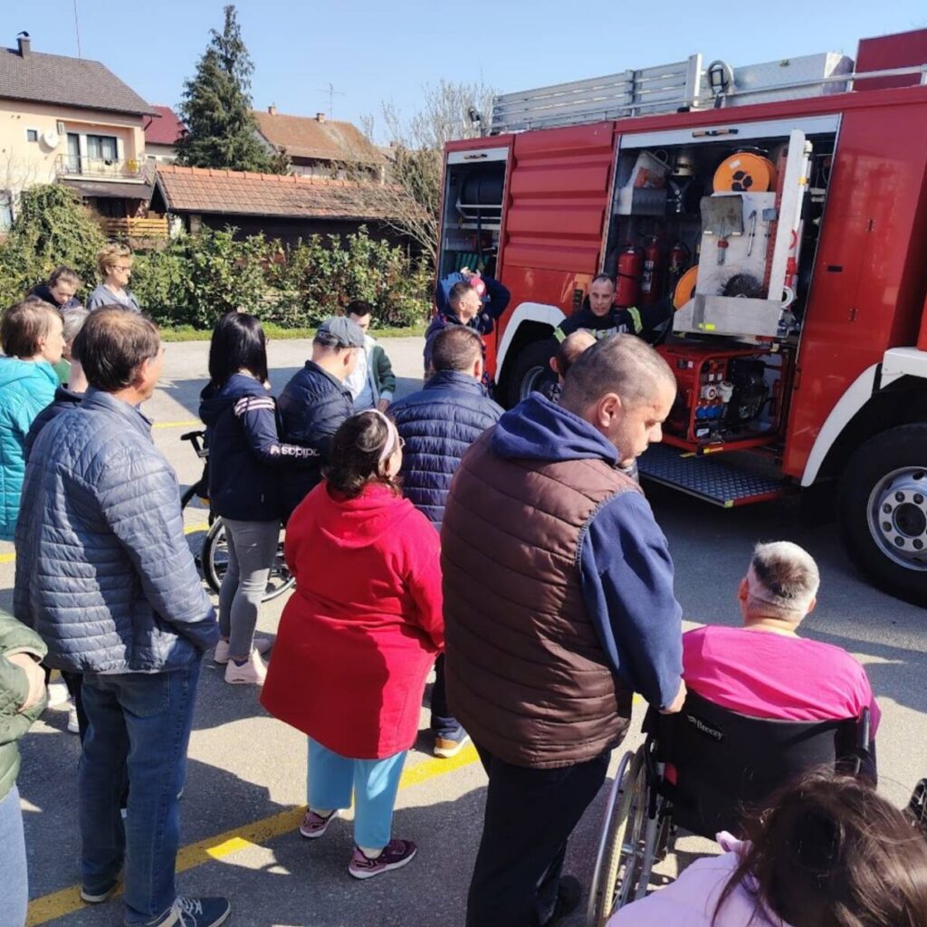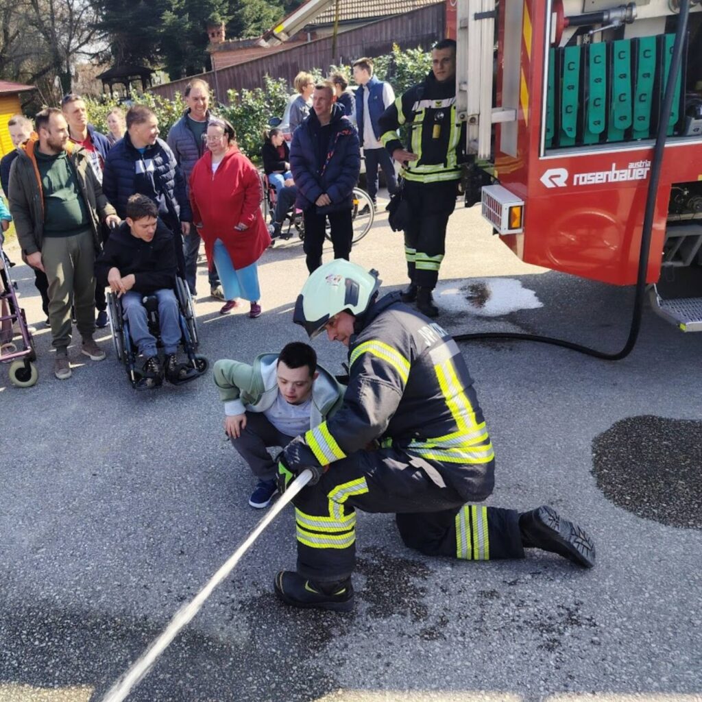 Prekrasan dan u srijedu, sredinom ožujka, donio nam je novu energiju za učenje! U Latice su došli naši prijatelji, vatrogasci Nikola i Antonio iz Javne vatrogasne postrojbe Grada Koprivnice i predstavili nam svoj posao, opremu i način rada. Uz mnogo razgovora i zabave objasnili su nam sve o svom zanimanju, pokazali nam uređaje i pomagala na vatrogasnom kamionu, a veliko uzbuđenje kod nas je izazvala prilika da isprobamo pustiti vodu iz vatrogasne mlaznice. Nakon ovako uzbudljivog doživljaja, opustili smo se uz pjesmu i zabavu, a naši prijatelji vatrogasci su nam poklonili bojanke i brošure vezane uz njihov posao. Ovakav tip interaktivnog rada na otvorenom ojačava naše samopouzdanje te pruža priliku za uključivanje u svakodnevicu. Već sad smo nestrpljivi u očekivanju sljedećeg susreta, hvala dečki, još jednom ste nas inspirirali za stjecanje novih iskustava.