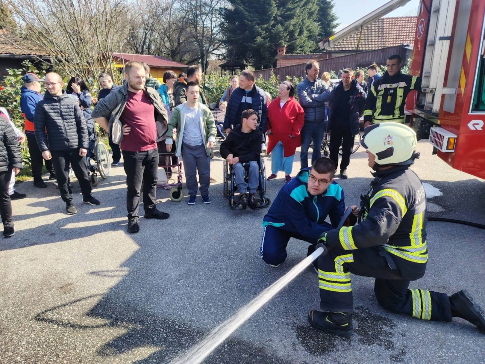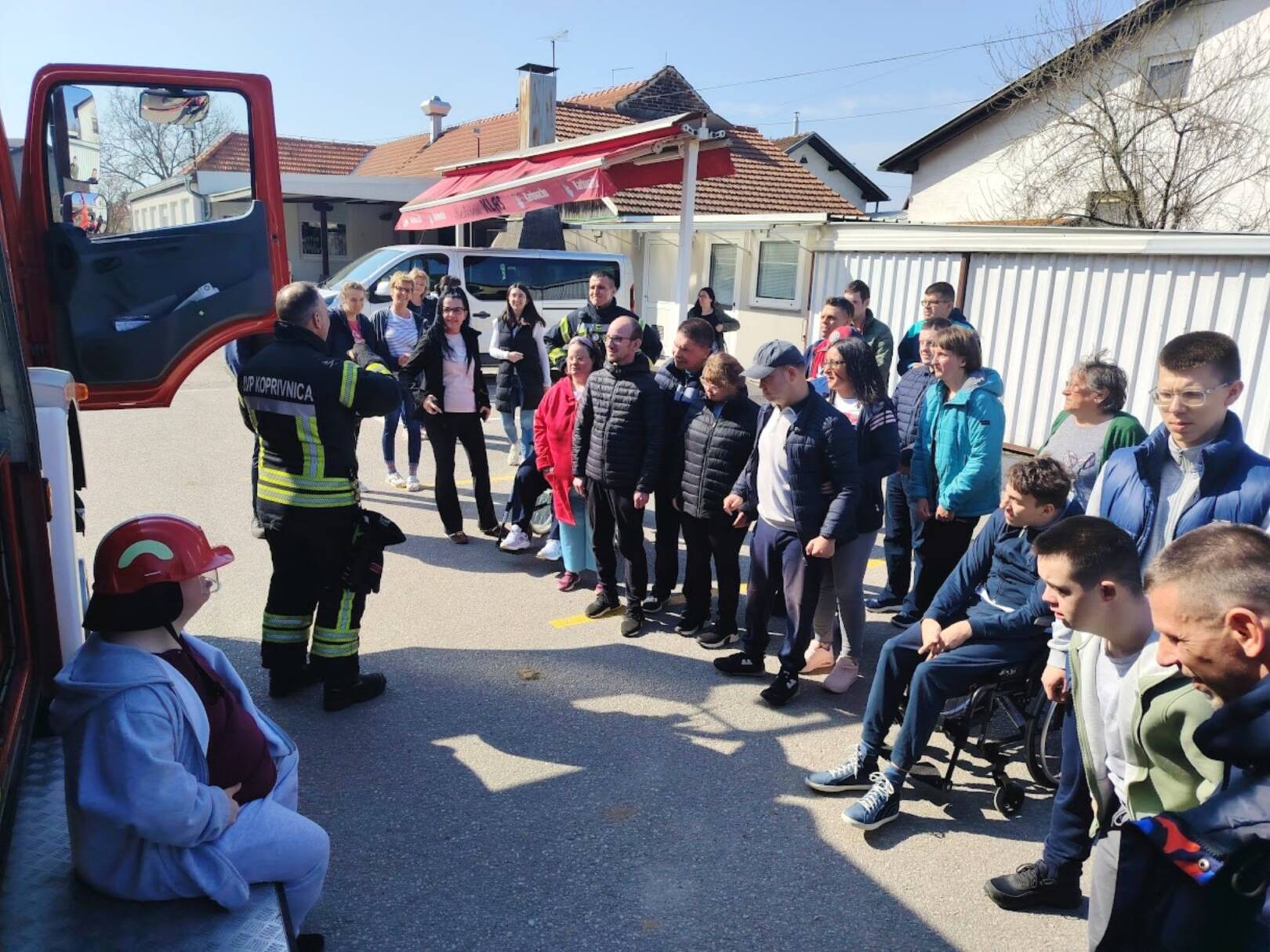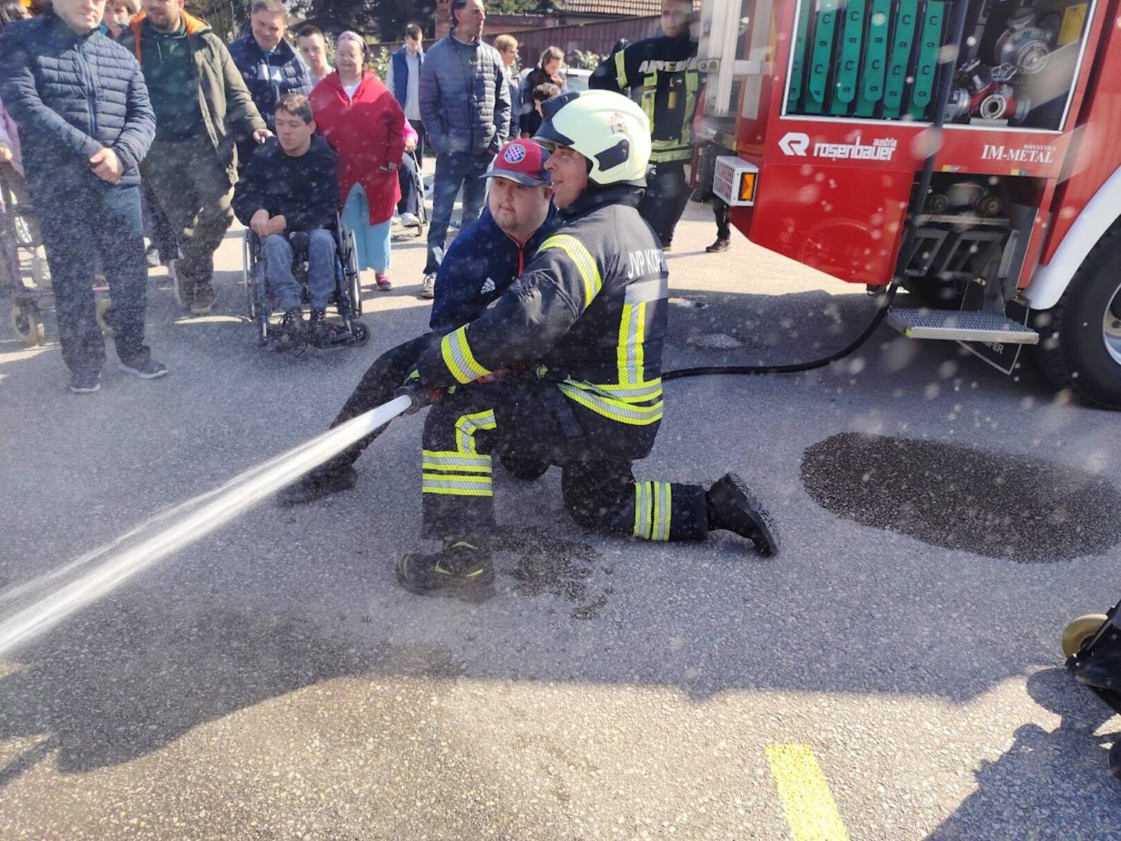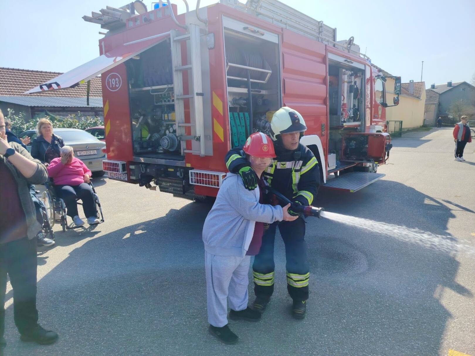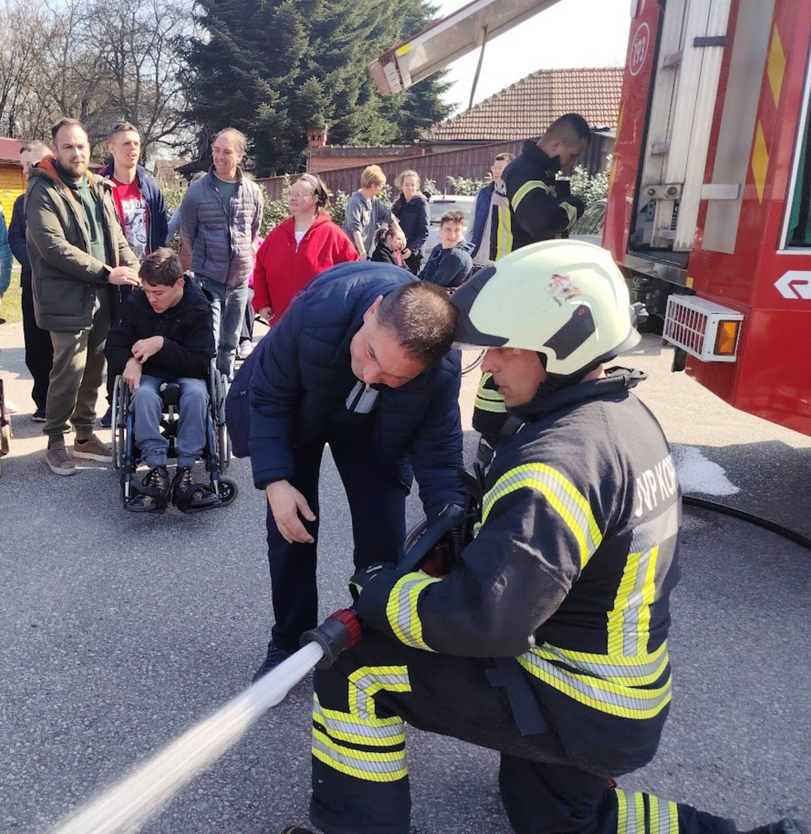 Prekrasan dan u srijedu, sredinom ožujka, donio nam je novu energiju za učenje! U Latice su došli naši prijatelji, vatrogasci Nikola i Antonio iz Javne vatrogasne postrojbe Grada Koprivnice i predstavili nam svoj posao, opremu i način rada. Uz mnogo razgovora i zabave objasnili su nam sve o svom zanimanju, pokazali nam uređaje i pomagala na vatrogasnom kamionu, a veliko uzbuđenje kod nas je izazvala prilika da isprobamo pustiti vodu iz vatrogasne mlaznice. Nakon ovako uzbudljivog doživljaja, opustili smo se uz pjesmu i zabavu, a naši prijatelji vatrogasci su nam poklonili bojanke i brošure vezane uz njihov posao. Ovakav tip interaktivnog rada na otvorenom ojačava naše samopouzdanje te pruža priliku za uključivanje u svakodnevicu. Već sad smo nestrpljivi u očekivanju sljedećeg susreta, hvala dečki, još jednom ste nas inspirirali za stjecanje novih iskustava.
