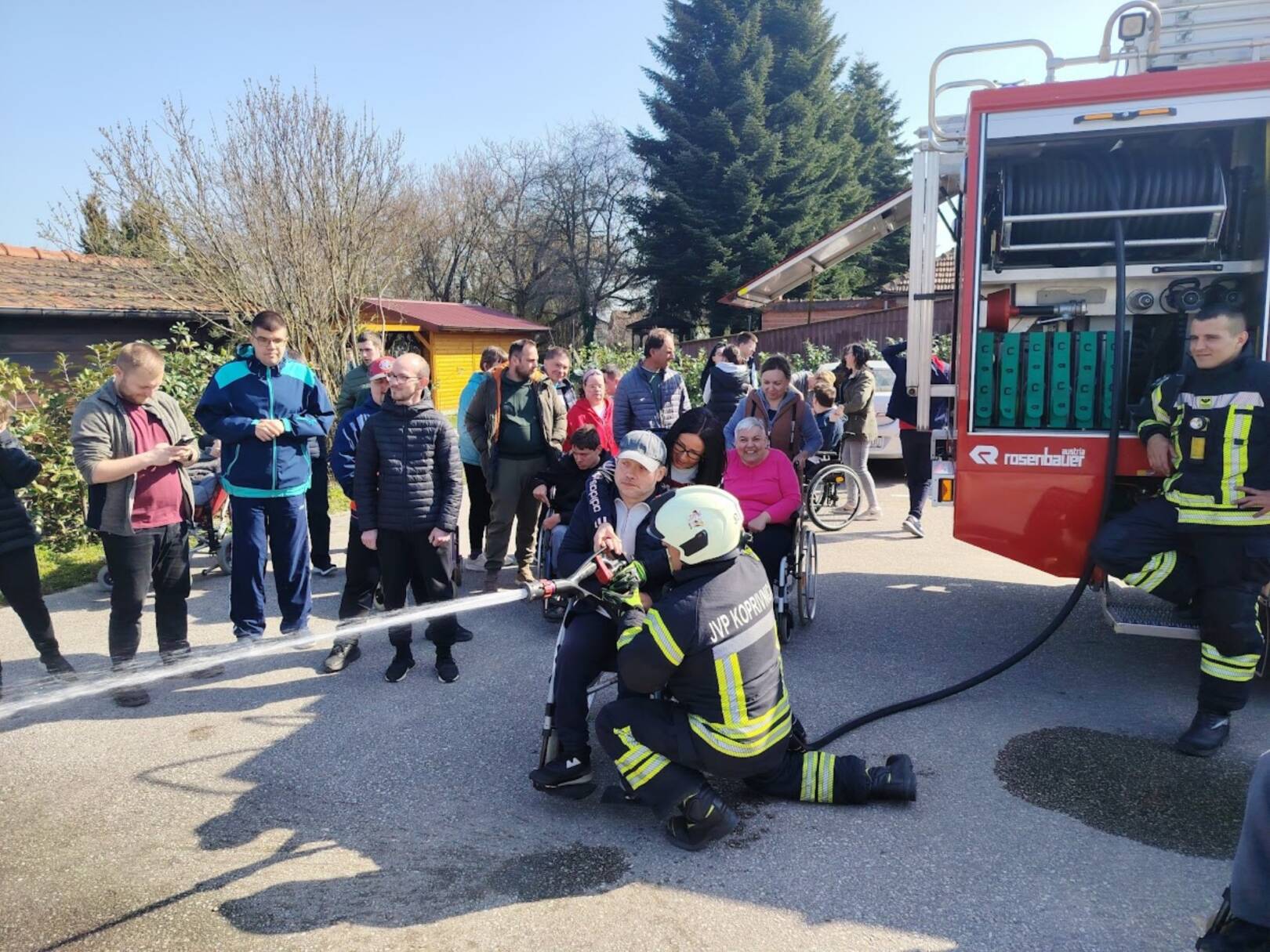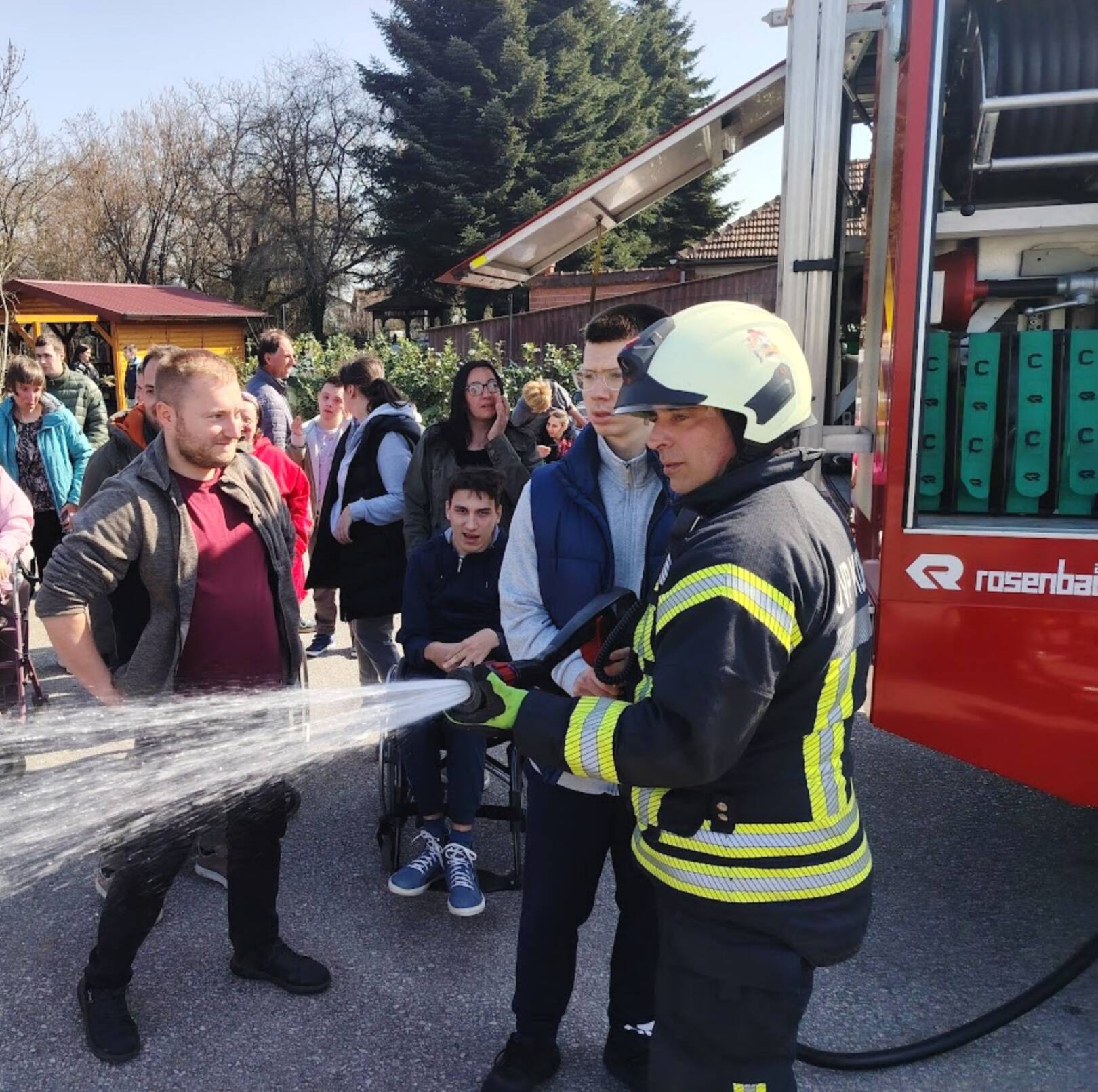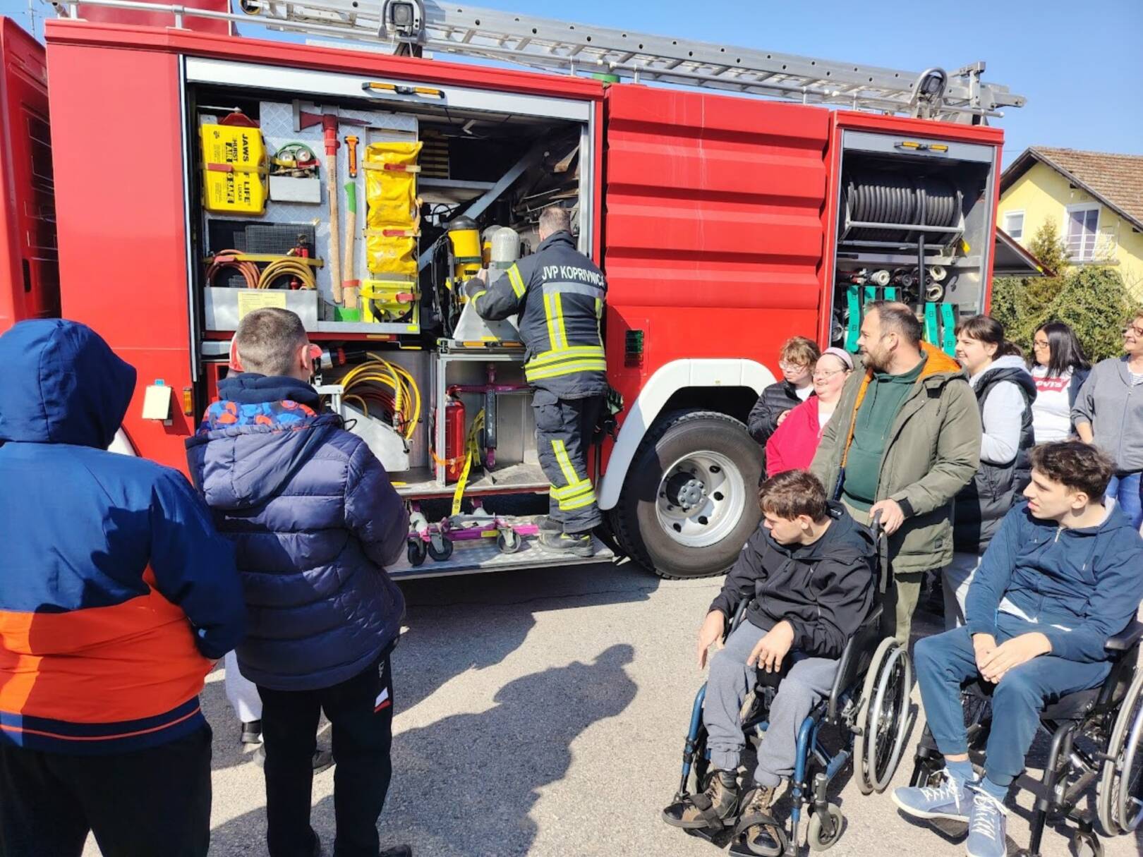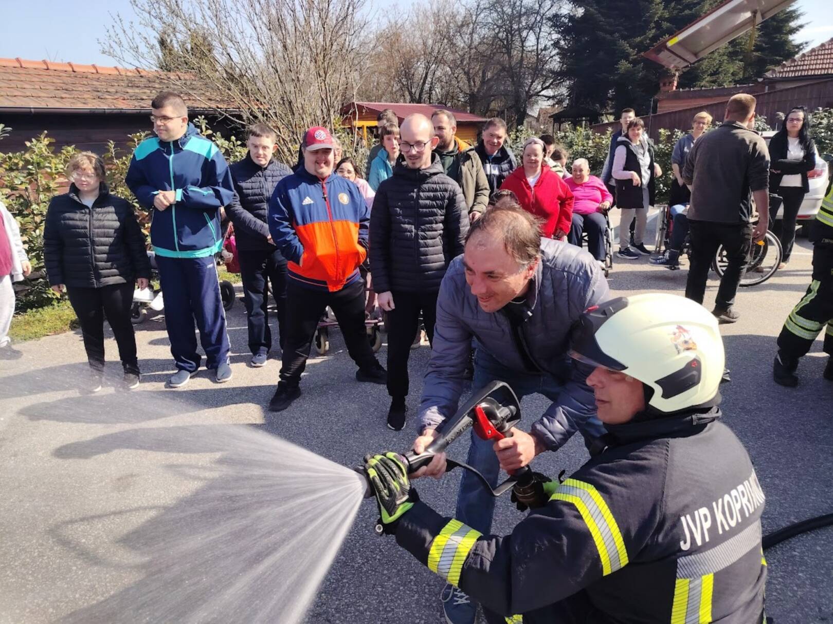 Prekrasan dan u srijedu, sredinom ožujka, donio nam je novu energiju za učenje! U Latice su došli naši prijatelji, vatrogasci Nikola i Antonio iz Javne vatrogasne postrojbe Grada Koprivnice i predstavili nam svoj posao, opremu i način rada. Uz mnogo razgovora i zabave objasnili su nam sve o svom zanimanju, pokazali nam uređaje i pomagala na vatrogasnom kamionu, a veliko uzbuđenje kod nas je izazvala prilika da isprobamo pustiti vodu iz vatrogasne mlaznice. Nakon ovako uzbudljivog doživljaja, opustili smo se uz pjesmu i zabavu, a naši prijatelji vatrogasci su nam poklonili bojanke i brošure vezane uz njihov posao. Ovakav tip interaktivnog rada na otvorenom ojačava naše samopouzdanje te pruža priliku za uključivanje u svakodnevicu. Već sad smo nestrpljivi u očekivanju sljedećeg susreta, hvala dečki, još jednom ste nas inspirirali za stjecanje novih iskustava.