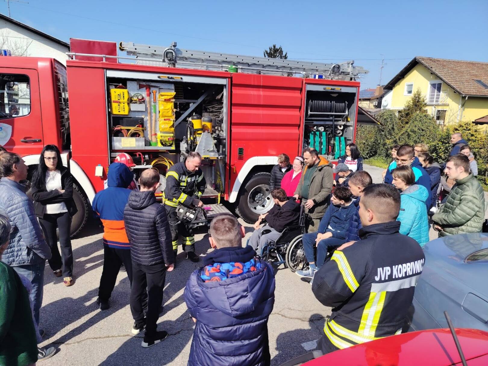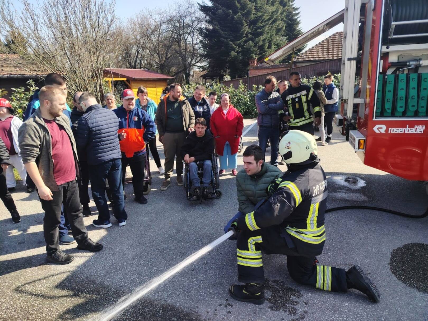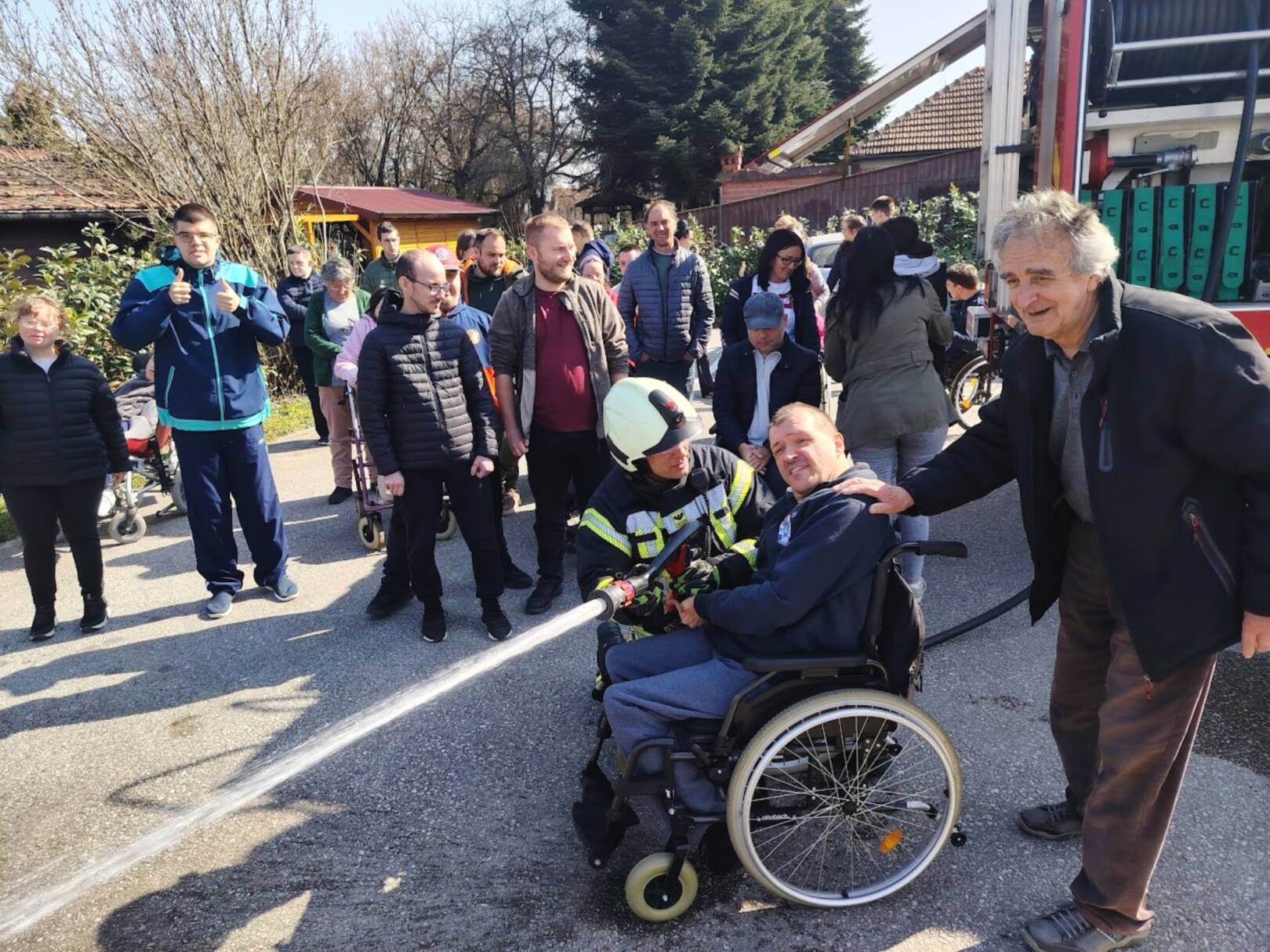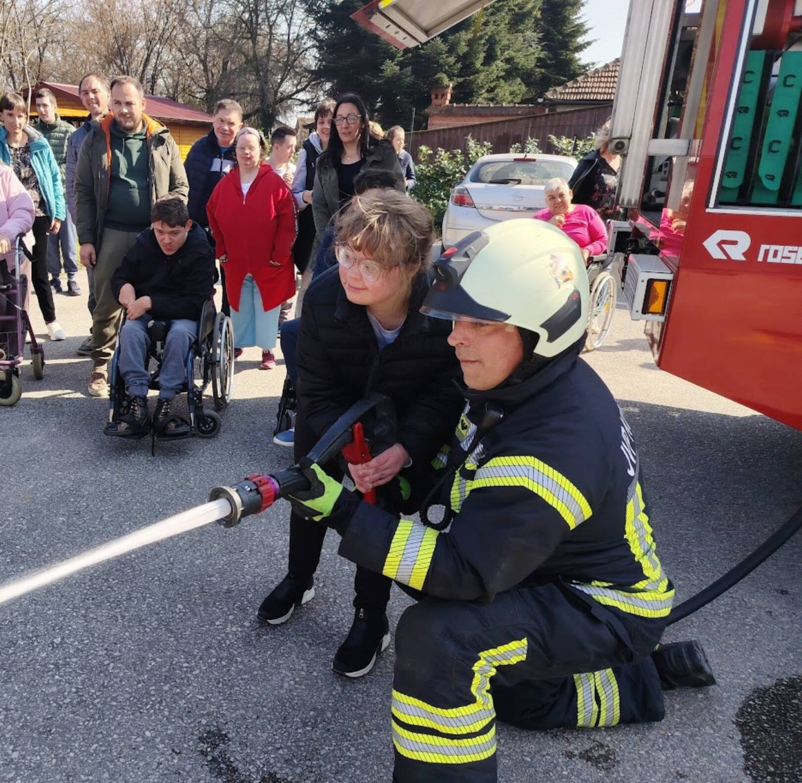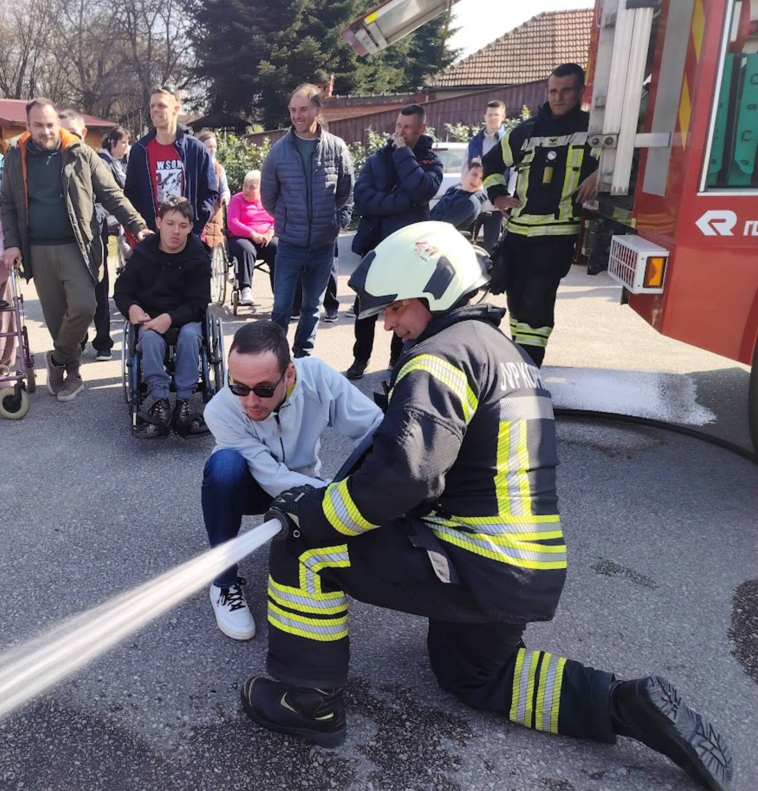Prekrasan dan u srijedu, sredinom ožujka, donio nam je novu energiju za učenje! U Latice su došli naši prijatelji, vatrogasci Nikola i Antonio iz Javne vatrogasne postrojbe Grada Koprivnice i predstavili nam svoj posao, opremu i način rada. Uz mnogo razgovora i zabave objasnili su nam sve o svom zanimanju, pokazali nam uređaje i pomagala na vatrogasnom kamionu, a veliko uzbuđenje kod nas je izazvala prilika da isprobamo pustiti vodu iz vatrogasne mlaznice. Nakon ovako uzbudljivog doživljaja, opustili smo se uz pjesmu i zabavu, a naši prijatelji vatrogasci su nam poklonili bojanke i brošure vezane uz njihov posao. Ovakav tip interaktivnog rada na otvorenom ojačava naše samopouzdanje te pruža priliku za uključivanje u svakodnevicu. Već sad smo nestrpljivi u očekivanju sljedećeg susreta, hvala dečki, još jednom ste nas inspirirali za stjecanje novih iskustava.