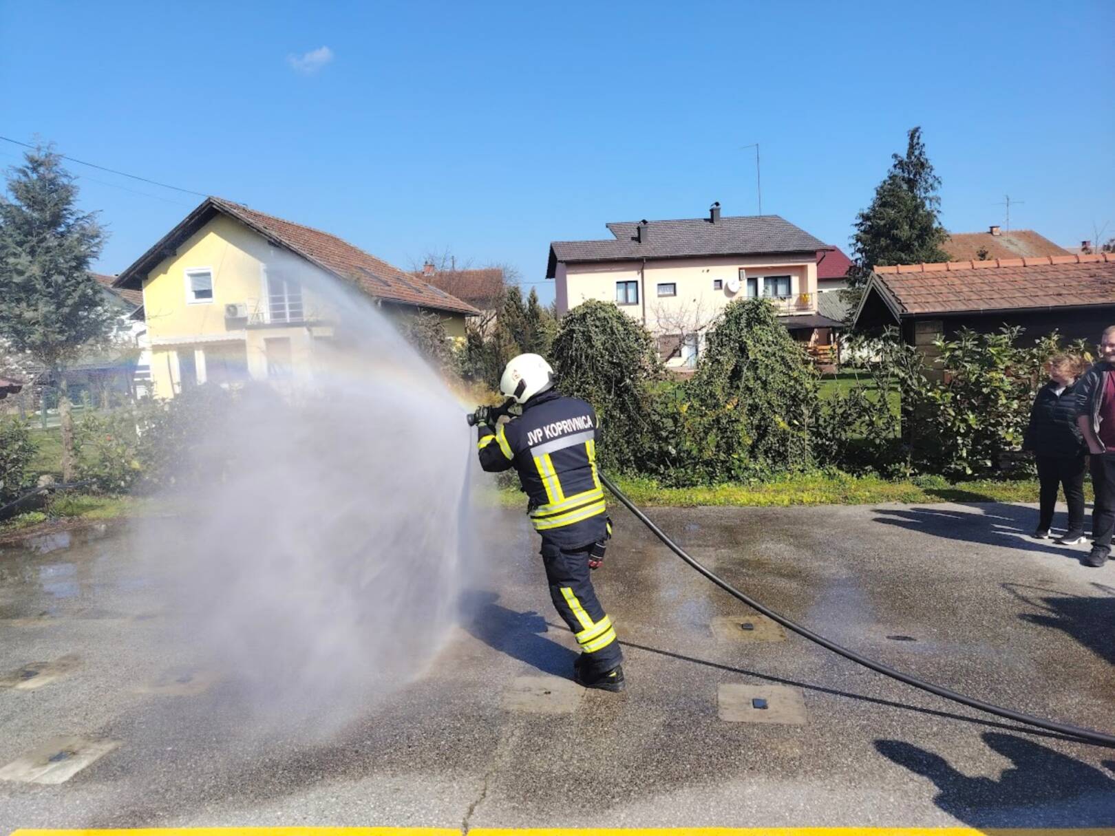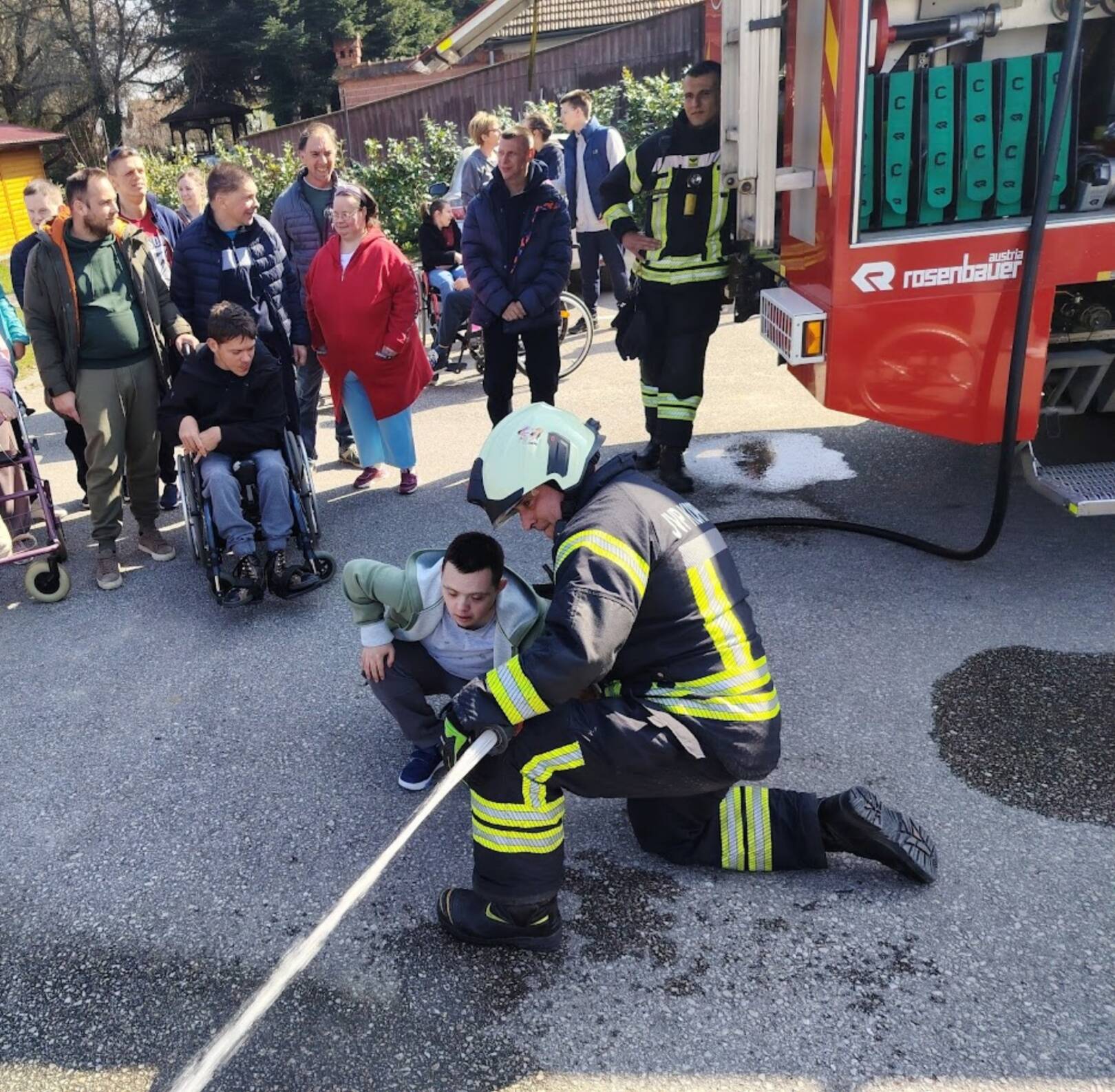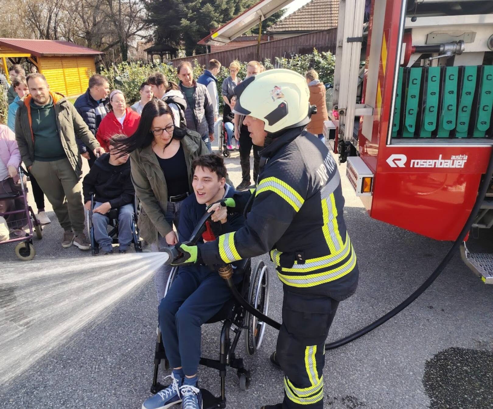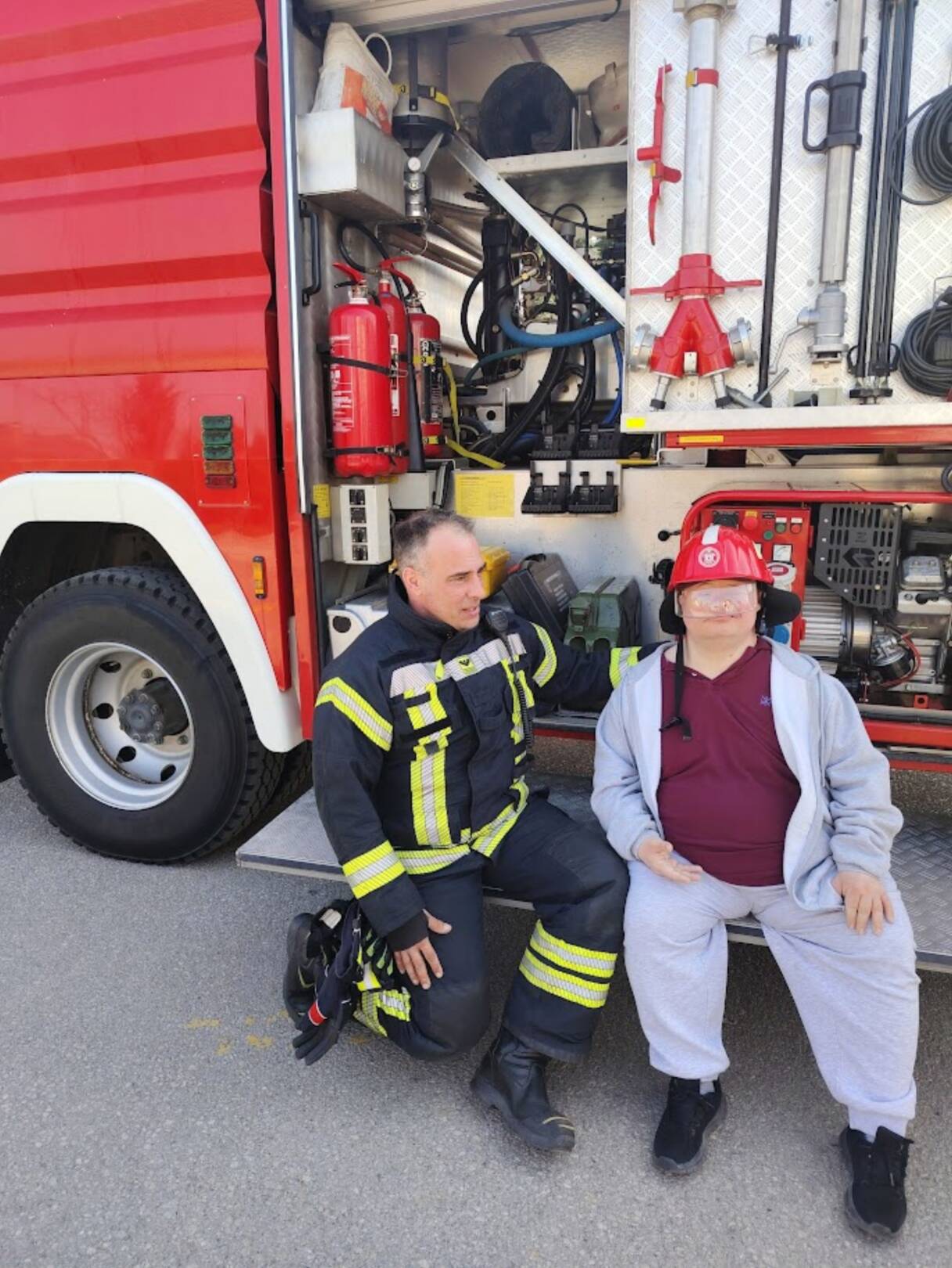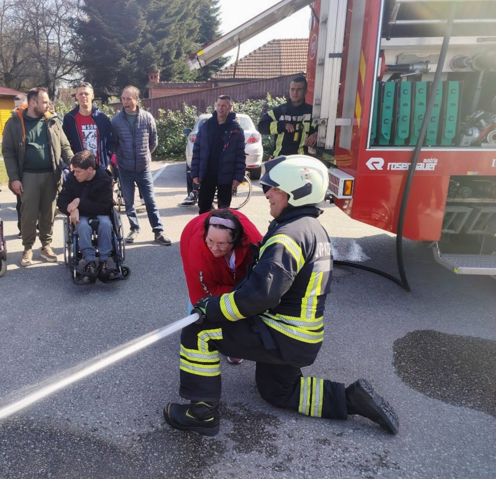 Prekrasan dan u srijedu, sredinom ožujka, donio nam je novu energiju za učenje! U Latice su došli naši prijatelji, vatrogasci Nikola i Antonio iz Javne vatrogasne postrojbe Grada Koprivnice i predstavili nam svoj posao, opremu i način rada. Uz mnogo razgovora i zabave objasnili su nam sve o svom zanimanju, pokazali nam uređaje i pomagala na vatrogasnom kamionu, a veliko uzbuđenje kod nas je izazvala prilika da isprobamo pustiti vodu iz vatrogasne mlaznice. Nakon ovako uzbudljivog doživljaja, opustili smo se uz pjesmu i zabavu, a naši prijatelji vatrogasci su nam poklonili bojanke i brošure vezane uz njihov posao. Ovakav tip interaktivnog rada na otvorenom ojačava naše samopouzdanje te pruža priliku za uključivanje u svakodnevicu. Već sad smo nestrpljivi u očekivanju sljedećeg susreta, hvala dečki, još jednom ste nas inspirirali za stjecanje novih iskustava.